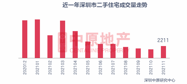 唐人联盟唐天胜据深圳中原研究中心最新数据显示, 11月,深圳二手住宅成交量突破2000套,达到2211套,超过10月份1605套的成交数据,结束七连跌。新房住宅成交超过5000套,环比增长了近20%。