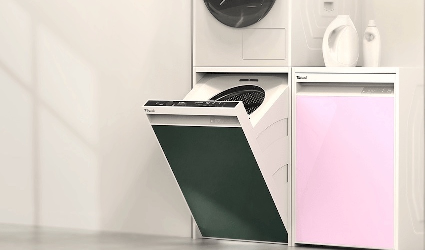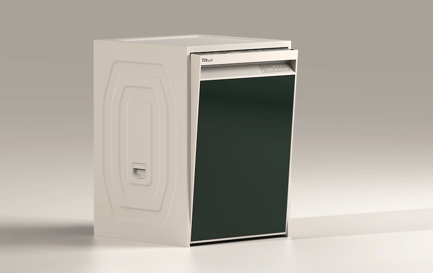 直立式洗衣机无法像滚筒洗衣机一样,能与烘干机垂直叠放,成为寸土寸金时代里难以驾驭的选择,但它高效率洗涤时间仍旧是许多人的首选,于是韩国工业设计师Hyun Yun Shin提出了Tilt 洗衣机设计概念,从此兼具直立式洗衣机的洗涤性能,与滚筒式垂直堆叠优势。