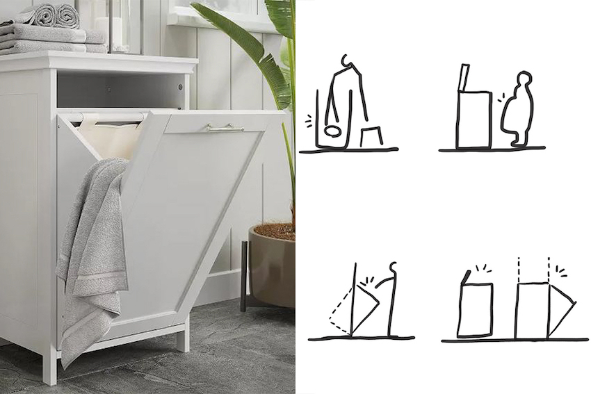 由于直立式的筒深对于身高不高或孕妇等使用者,容易造成难以拿取衣物困扰,也为亲子空间增加安全疑虑,因此设计师导入倾斜式门片设计,省下拿取衣服时弯腰、蹲低等不便利动作,更使洗烘衣机能够垂直堆放,成功适应了如今小坪数趋势。