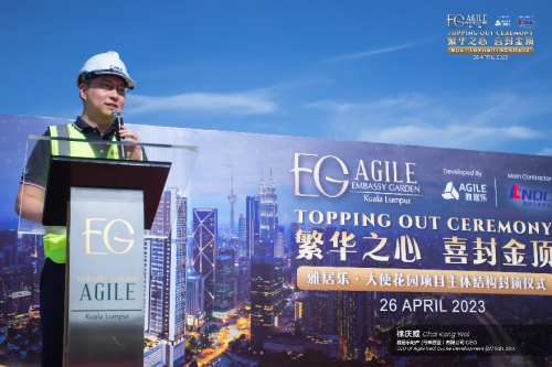 封顶仪式当天,雅居乐海外公司总经理徐庆威表示,雅居乐大使花园的顺利推进离不开所有参与项目人员的努力和奉献。包括顾问、总承包商、分包商、代理、银行和媒体等社会各界的支持。特别是要感谢雅居乐大使花园的承建商青建马来西亚团队的贡献,他们的奉献、努力和追求卓越是这个项目成功封顶的关键。徐总指出:“在这2年期间,没有我们销售团队和代理合作伙伴的辛勤工作和支持,我们不可能在困难时期实现销售。他也提及:“随着去年以来许多国家开放边境和我们对本地市场的战略,有信心让我们的销售很快会回到正轨,我们的项目现金流也比以往任何时候都强劲。”
