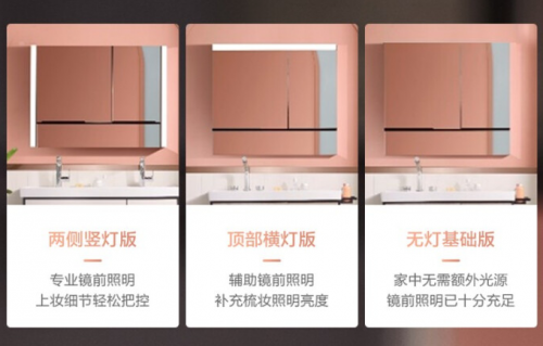 为了满足不同用户的照明偏好,科勒镜柜博纳2.0提供了多种照明方案选择,包括顶部基础无灯、顶部横灯以及两侧竖灯等,用户可以根据自己的实际需求,灵活调整照明布局,营造最舒适的梳妆氛围。
